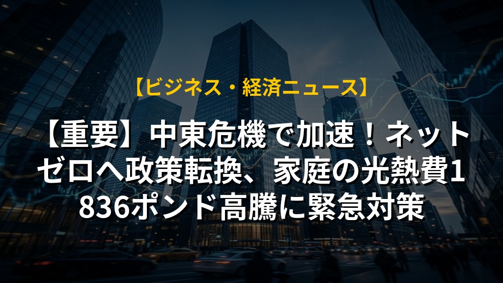 【重要】中東危機で加速!ネットゼロへ政策転換、家庭の光熱費1836ポンド高騰に緊急対策