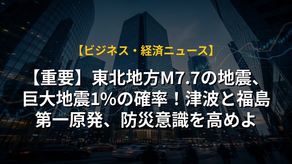 内閣府と気象庁は、今後1週間程度で北日本沿岸で巨大地震が発生する確率が1%であると発表し、住民に備えを促しています。