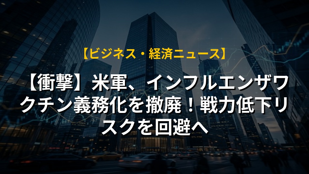 アメリカ国防総省が、兵士へのインフルエンザワクチン義務化を撤廃し、任意接種に方針転換しました。トランプ政権下での「自由と戦力回復」を掲げた動きの一環で、過度な義務化が戦力低下につながるという考えが背景にあります。新型コロナウイルスワクチン義務化を巡る過去の経緯も影響しているのかもしれません。