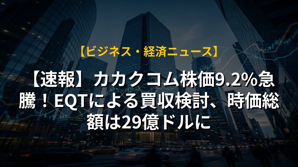 【速報】カカクコム株価9.2%急騰!EQTによる買収検討、時価総額は29億ドルに