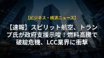 【速報】スピリット航空、数日後に資金枯渇!トランプ氏が政府救済を示唆—5億ドル融資で破産回避なるか?の注目ポイントまとめ