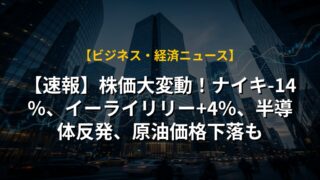 【速報】株価大変動!ナイキ-14%、イーライリリー+4%、半導体反発、原油価格下落も