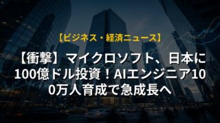【衝撃】マイクロソフト、日本に100億ドル投資!AIエンジニア100万人育成で急成長へ