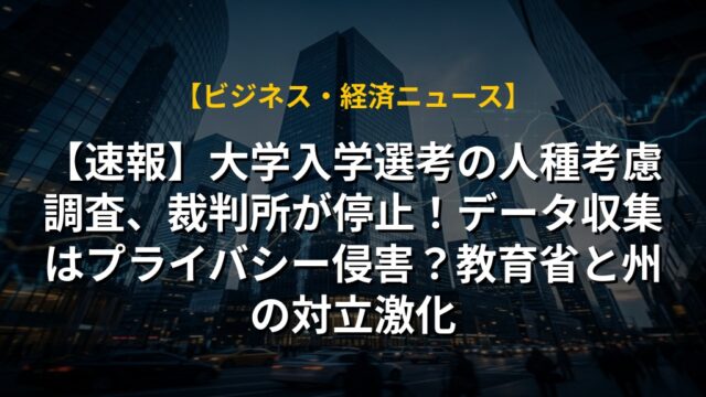 【速報】大学入学選考の人種考慮調査、裁判所が停止!データ収集はプライバシー侵害?教育省と州の対立激化