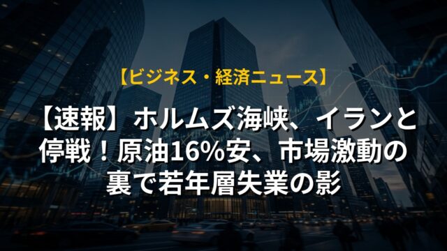 【速報】ホルムズ海峡、イランと停戦!原油16%安、市場激動の裏で若年層失業の影