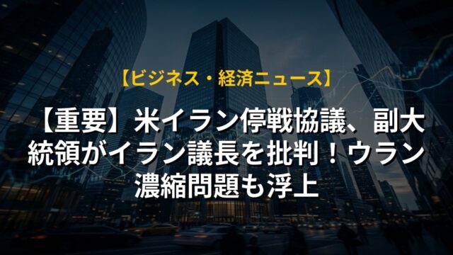 【重要】米イラン停戦協議、副大統領がイラン議長を批判!ウラン濃縮問題も浮上