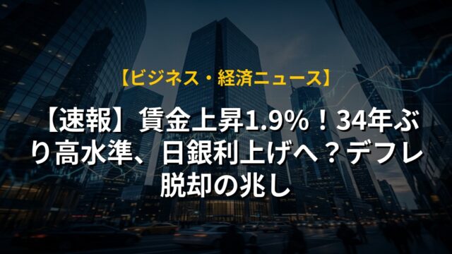 【速報】賃金上昇1.9%!34年ぶり高水準、日銀利上げへ?デフレ脱却の兆し