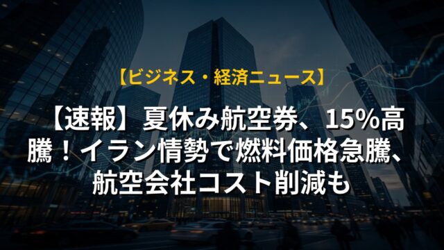 【速報】夏休み航空券、15%高騰!イラン情勢で燃料価格急騰、航空会社コスト削減も