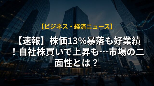 【速報】株価13%暴落も好業績!自社株買いで上昇も…市場の二面性とは?