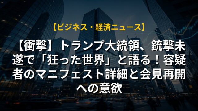 【衝撃】トランプ大統領、銃撃未遂で「狂った世界」と語る!容疑者のマニフェスト詳細と会見再開への意欲
