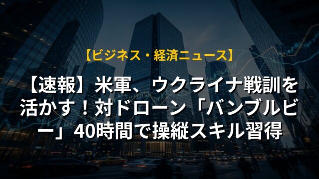 【速報】米軍、ウクライナ戦訓を活かす!対ドローン「バンブルビー」40時間で操縦スキル習得
