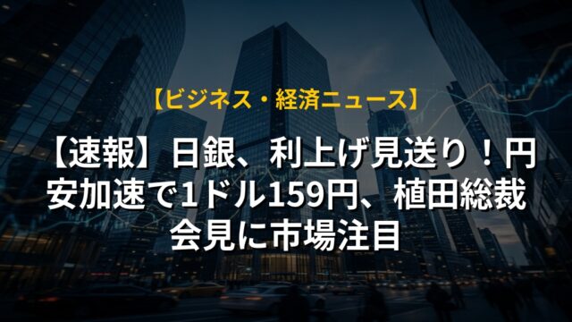 【速報】日銀、利上げ見送り!円安加速で1ドル159円、植田総裁会見に市場注目