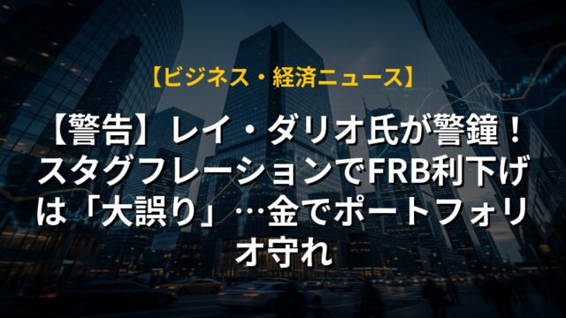 【警告】レイ・ダリオ氏が警鐘!スタグフレーションでFRB利下げは「大誤り」…金でポートフォリオ守れ