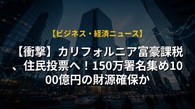 【衝撃】カリフォルニア富豪課税、住民投票へ!150万署名集め1000億円の財源確保か