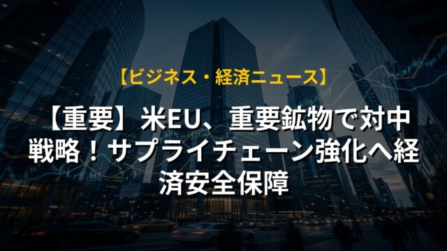 【重要】EU・米国、中国依存脱却へ!重要鉱物でサプライチェーン再構築、経済安全保障強化へ