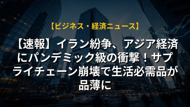 【速報】イラン紛争、アジア経済にパンデミック級の衝撃!サプライチェーン崩壊で生活必需品が品薄に