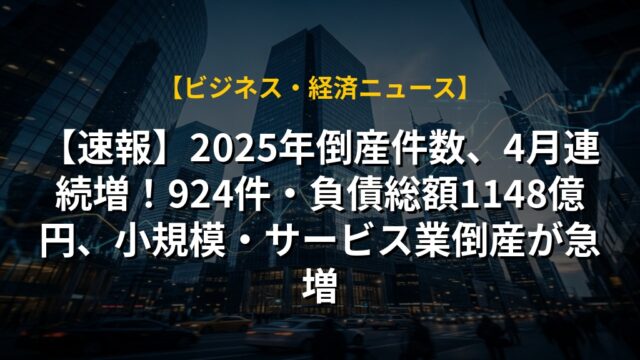 【速報】2025年倒産件数、4月連続増!924件・負債総額1148億円、小規模・サービス業倒産が急増