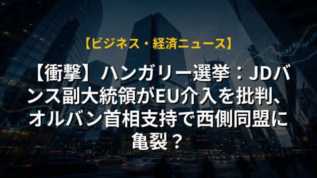 【衝撃】ハンガリー選挙:JDバンス副大統領がEU介入を批判、オルバン首相支持で西側同盟に亀裂?