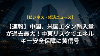 【速報】中国、米国エタン輸入量が過去最大!中東リスクでエネルギー安全保障に黄信号