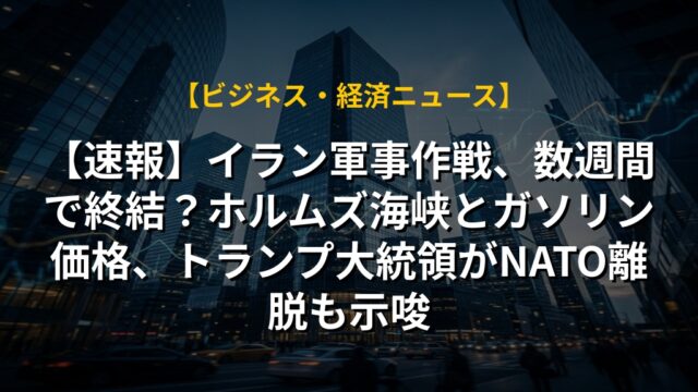 【速報】イラン軍事作戦、数週間で終結?ホルムズ海峡とガソリン価格、トランプ大統領がNATO離脱も示唆