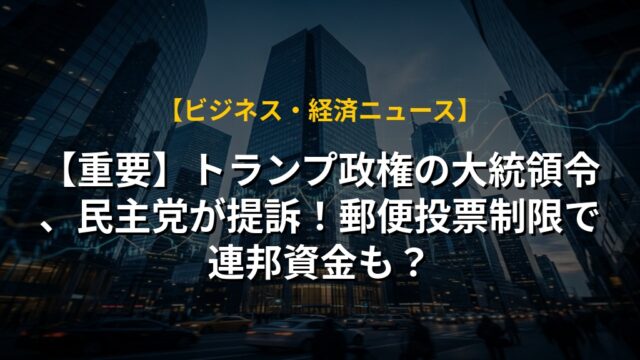 【重要】トランプ政権の大統領令、民主党が提訴!郵便投票制限で連邦資金も?