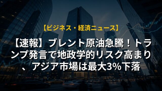 【速報】ブレント原油急騰!トランプ発言で地政学的リスク高まり、アジア市場は最大3%下落