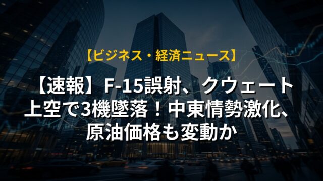 【速報】F-15誤射、クウェート上空で3機墜落!中東情勢激化、原油価格も変動か