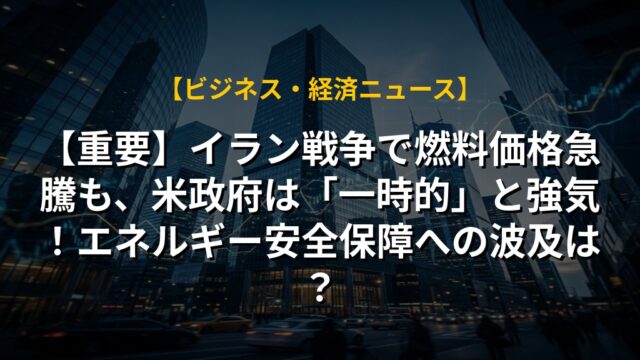 【重要】イラン戦争で燃料価格急騰も、米政府は「一時的」と強気!エネルギー安全保障への波及は?