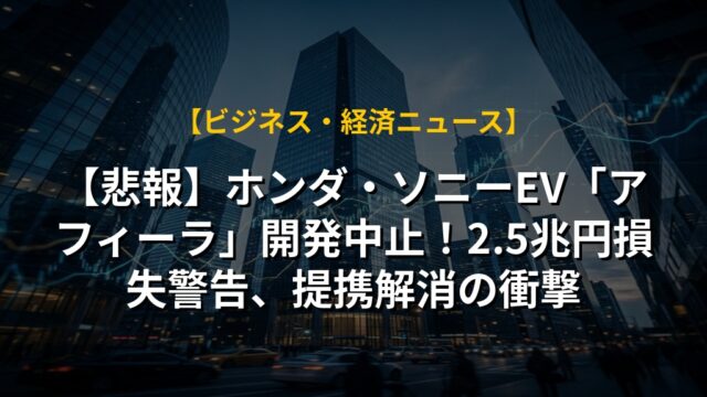 【悲報】ホンダ・ソニーEV「アフィーラ」開発中止!2.5兆円損失警告、提携解消の衝撃