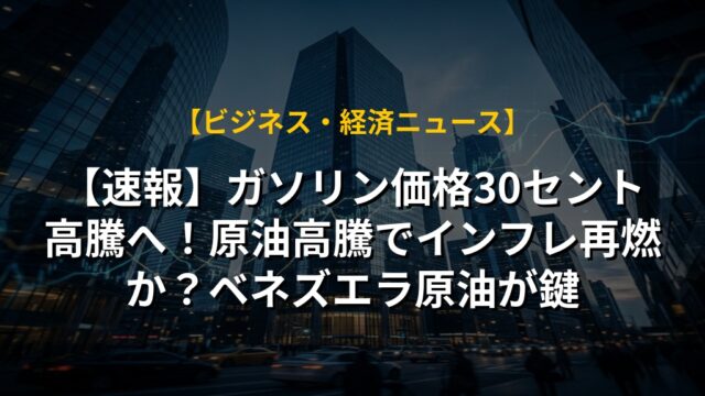 【速報】ガソリン価格30セント高騰へ!原油高騰でインフレ再燃か?ベネズエラ原油が鍵