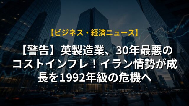 【警告】英製造業、30年最悪のコストインフレ!イラン情勢が成長を1992年級の危機へ