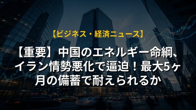 【重要】中国のエネルギー命綱、イラン情勢悪化で逼迫!最大5ヶ月の備蓄で耐えられるか