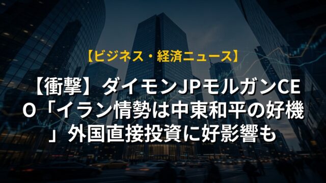 【衝撃】ダイモンJPモルガンCEO「イラン情勢は中東和平の好機」外国直接投資に好影響も