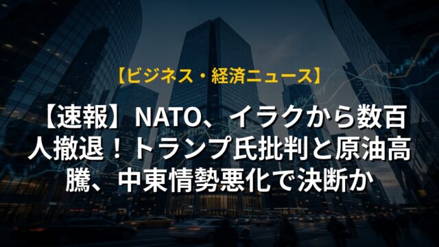 【速報】NATO、イラクから数百人撤退!トランプ氏批判と原油高騰、中東情勢悪化で決断か