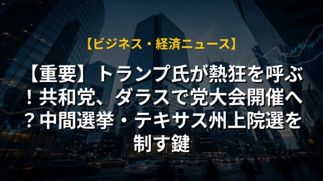 【重要】トランプ氏が熱狂を呼ぶ!共和党、ダラスで党大会開催へ?中間選挙・テキサス州上院選を制す鍵