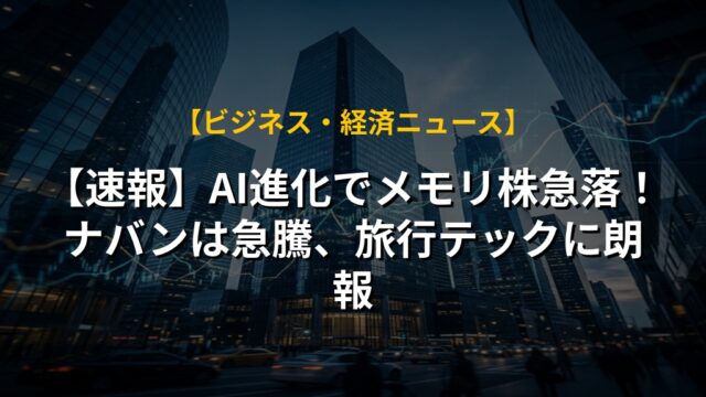 【速報】AI進化でメモリ株急落!ナバンは急騰、旅行テックに朗報