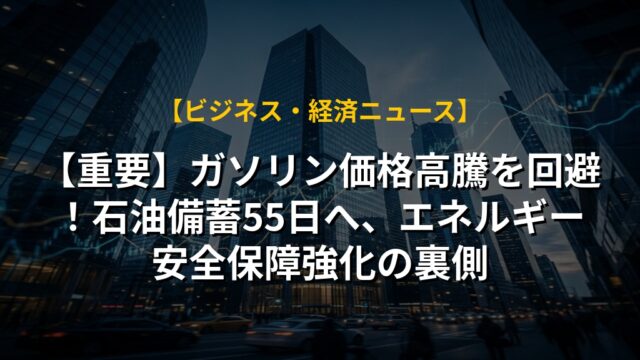 【重要】ガソリン価格高騰を回避!石油備蓄55日へ、エネルギー安全保障強化の裏側