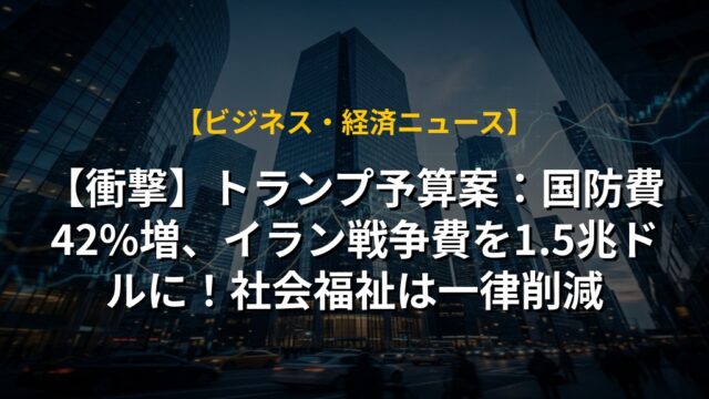 【衝撃】トランプ予算案:国防費42%増、イラン戦争費を1.5兆ドルに!社会福祉は一律削減
