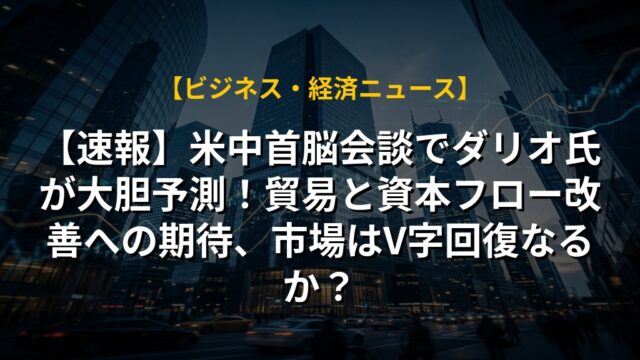 【速報】米中首脳会談でダリオ氏が大胆予測!貿易と資本フロー改善への期待、市場はV字回復なるか?