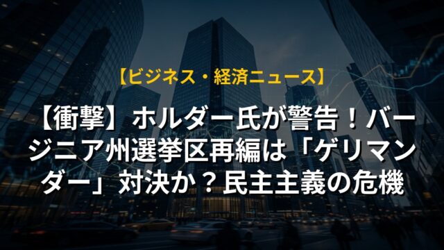 【衝撃】ホルダー氏が警告!バージニア州選挙区再編は「ゲリマンダー」対決か?民主主義の危機