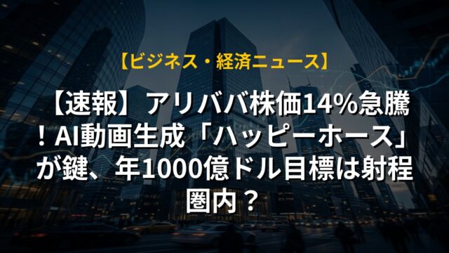 【速報】アリババ株価14%急騰!AI動画生成「ハッピーホース」が鍵、年1000億ドル目標は射程圏内?