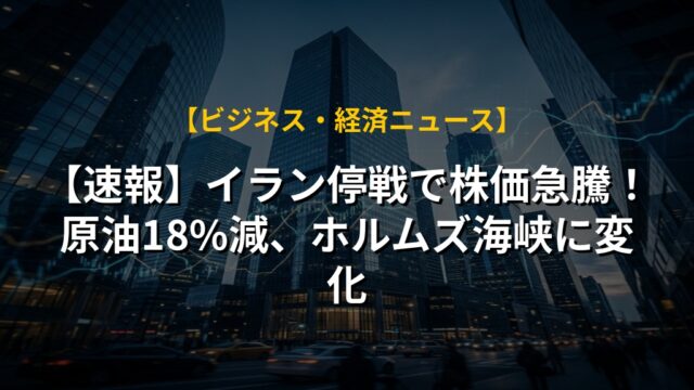 【速報】イラン停戦で株価急騰!原油18%減、ホルムズ海峡に変化