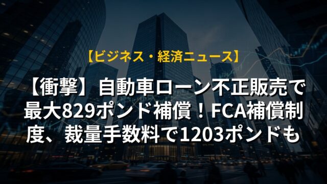 【衝撃】自動車ローン不正販売で最大829ポンド補償!FCA補償制度、裁量手数料で1203ポンドも