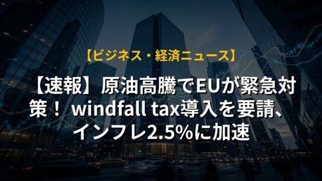 【速報】原油高騰でEUが緊急対策! windfall tax導入を要請、インフレ2.5%に加速