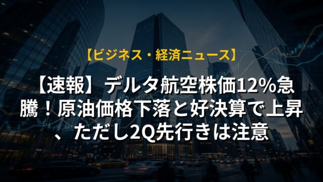 【速報】デルタ航空株価12%急騰!原油価格下落と好決算で上昇、ただし2Q先行きは注意