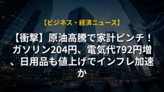 【衝撃】原油高騰で家計ピンチ!ガソリン204円、電気代792円増、日用品も値上げでインフレ加速か
