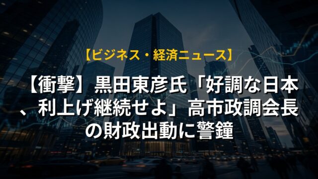 【衝撃】黒田東彦氏「好調な日本、利上げ継続せよ」高市政調会長の財政出動に警鐘
