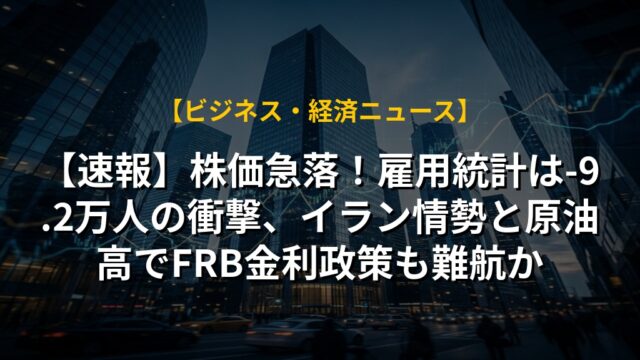 【速報】株価急落!雇用統計は-9.2万人の衝撃、イラン情勢と原油高でFRB金利政策も難航か