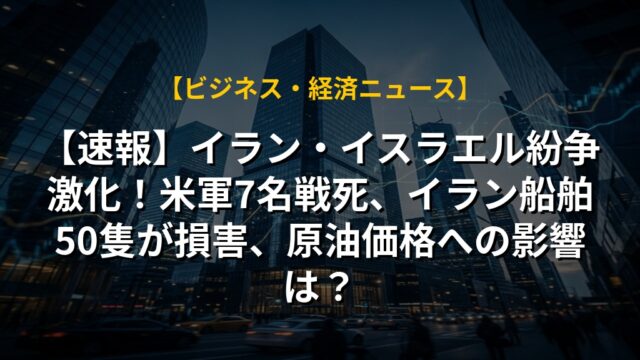 【速報】イラン・イスラエル紛争激化!米軍7名戦死、イラン船舶50隻が損害、原油価格への影響は?