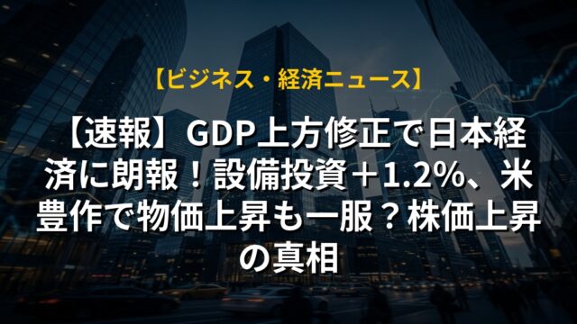 【速報】GDP上方修正で日本経済に朗報!設備投資+1.2%、米豊作で物価上昇も一服?株価上昇の真相